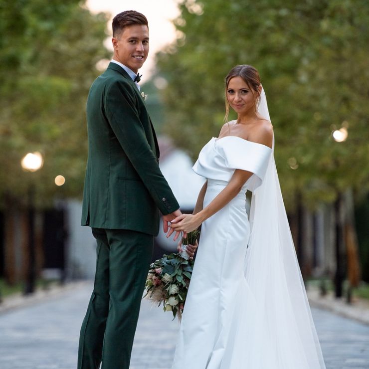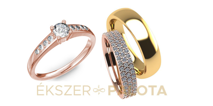 Ádám egy klasszikus sárga arany 5mm-es, domború, fényes felületű karikagyűrűt választott, Bogi egy rozé arany körbeköves, csillogó gyémántokkal foglalt gyűrűbe szeretett bele, ami az eljegyzési gyűrűje mellett hordva is kényelmes viselet. Az Ékszerpalota örök garanciája mindegyik gyűrűjükre érvényes.